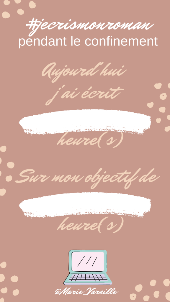 Pendant toute la durée du challenge, vous pouvez me poser vos questions en story, en post ou en MP en me tagguant : @Marie_Vareille et en mettant le hashtag #jecrismonroman