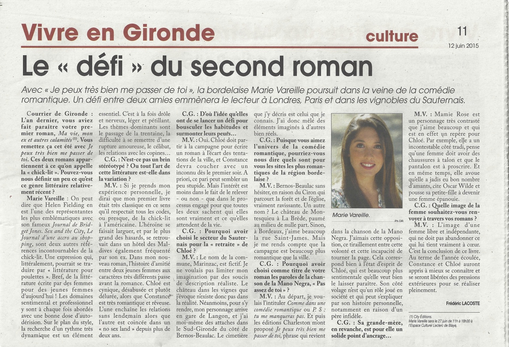 Le Courrier de Gironde le 12 juin 2015